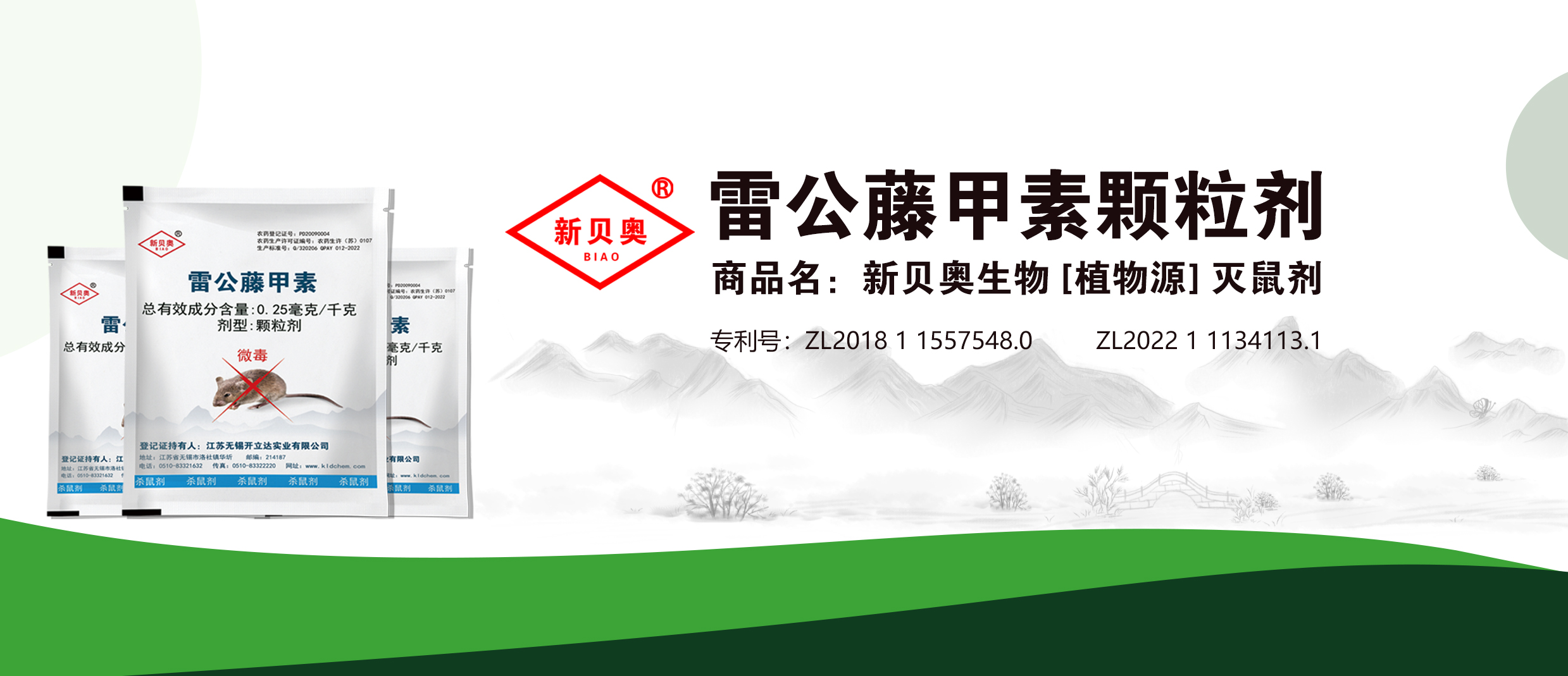 何謂“新貝奧生物(植物源)滅鼠劑”雷公藤甲素滅鼠劑?新貝奧生物(植物源)滅鼠劑是產(chǎn)品的商品名。其農(nóng)藥名:雷公藤+制取物(雷公藤甲素滅鼠劑),因?yàn)樵摦a(chǎn)品雷公藤中含
